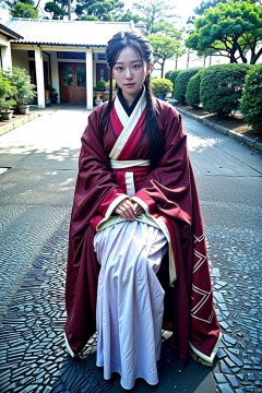 (1girl:1.3), (best quality, masterpiece, ultra high resolution),(photorealistic:1.3), (realistic:1.3), depth of field,(full body:1.2), (outdoors:1.2), (day:1.2), (cinematic lighting:1.2), (near to face:1.5), facing to camera, upper body, sitting, hanfu