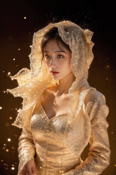 1girl,exquisite eyes,stars in the eyes,There are many scattered luminous petals,standing,elegant posture,(an extremely delicate and beautiful),contour deepening,white_background,gold powder,cinematic angle,<lora:jin_20231226224140-000011:0.7>,