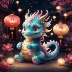 poakl Chinese newyear style, cute dragon, cute animal, lanterns,