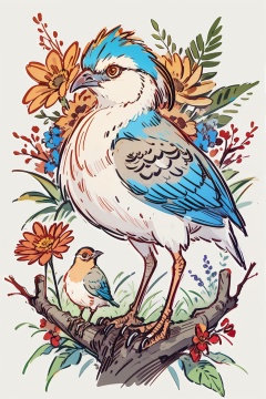 masterpiece,best quality,pheasantbird,pheasant,bluebird,chibi,standing on the branch,(red flower:1.2),sketch,<lora:Marker Illustration:1>,