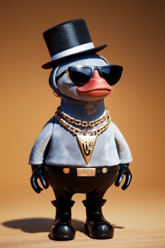 Best quality,masterpiece,ultra high res,yuan_3D_character,hat,sunglasses,solo,no humans,goose,anthro,chain,necklace,top hat,standing,jewelry,full body,simple background,lips,chain necklace,<lora:3D_character_v1.0:0.8>,