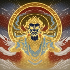 a projection of immortal,halo,<lora:eastern_mythology_xl:0.6>,golden line,tangka,mix,front view,