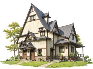 HEZI,Game single building scene,Best quality,high detail,masterpiece,super detail,illustration,a painting,pink architecture,no people,solo,hat,white background,outdoors,trees,Windows,grass,scenery,lanterns,rocks,stairs,fences,buildings,houses,doors,izayoi_sakuya,hong_meiling,<lora:盒子系列——欧美单体概念场景:0.6>,