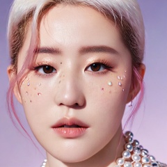 cinematic photo product editorial style of a albino model with Freckles she show a mascara in her hand,underwater colorful jellyfish hair,iridescent eyeshadow,oiled skin,Dumebi Iyamah,high fashion,trendy,stylish,editorial,magazine style,professional,highly detailed,monkren,sunlight, . 35mm photograph, film, bokeh, professional, 4k, highly detailed, liu yifei