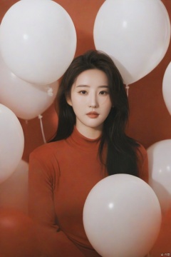 breathtaking cinematic film still,Cowboy_Shot,blouse,a cinematic fashion portrait photo of beautiful young woman from the 90s wearing a red turtleneck standing in the middle of a ton of white balloons,dramatic lighting,taken on a hasselblad medium format camera,looks like liuyifei,white balloon,shallow depth of field,vignette,highly detailed,high budget,bokeh,cinemascope,moody,epic,gorgeous,film grain,grainy . award-winning,professional,highly detailed,sc,monkren,, monkren, liu yifei