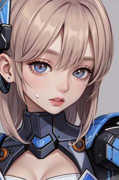 masterpiece,best quality,upper body,1girl,small breasts,mecha,colored with greyscale background,google sketchup \(medium\),mosaic art,hair over eyes,mismatched pupils,nosebleed,close-up