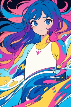 (masterpiece, best quality:1.2), (flat color:1.2),(2D:1.3),(colorful:1.2),looking at viewer,1girl,solo,upper body,floating colorful water,ff gradient