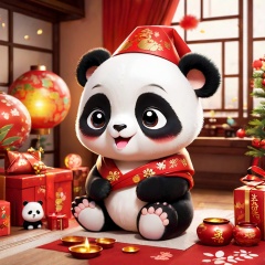 panda,cute,poakl cartoon newyear style,best quality,masterpiece,<lora:poaklSDXLcartoonnewyearV2-000007:0.6>,
