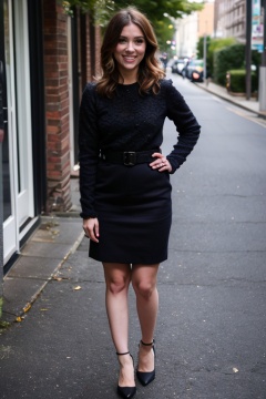 マスターチーフ PHOTOREALISTIC REALISTIC,masterpiece,best quality,highres,ultra detailed,8k,1woman,hand on hip,looking at viewer,teeth,grin,full body,(unlit dark night),street,<lora:t82:0.8>
