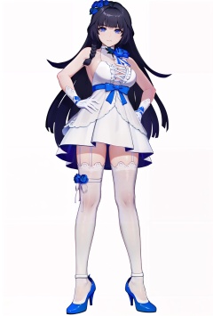 8k, best quality, masterpiece, (ultra-detailed:1.1), (high detailed skin), (full body:1.2), white background, looking at viewer, (solo), hand on hip, <lora:huajiayz-v100-000027:0.8:lbw=OUTALL>, white dress, huajia, thighhighs, long hair, white gloves, white thighhighs, purple eyes, hair ornament, breasts, flower, high heels, (white background, simple background,:1.2), <lora:EnvyBetterHands LoCon_beta2 辅助:0.55>, ( good hands, nice hands:0.5), (beautiful_face), ((intricate_detail)), clear face, ((finely_detailed)), fine_fabric_emphasis, ((glossy)), full_shot,