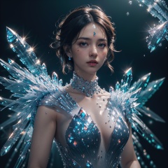 (best quality:1.4),(masterpiece:1.4),(photorealistic:1.4),(Realistic:1.2),(ultra high res, raw photo:1.4),(hdr, hyperdetailed:1.2),(8K:1.2),(1girl:1.2),(upper body:1.4),highly detailed,sharp focus,dynamic lighting,vivid colors,texture detail,particle effects,(black long straight hair:1.2),(white crystalz:1.5),(crystalz dress:1.4),(crystalz wing:1.5),<lora:Again_Crystalz:1>,