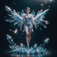 (best quality:1.4),(masterpiece:1.4),(photorealistic:1.4),(Realistic:1.2),(ultra high res, raw photo:1.4),(hdr, hyperdetailed:1.2),(8K:1.2),(1girl:1.2),(full body:1.4),highly detailed,sharp focus,dynamic lighting,vivid colors,texture detail,particle effects,(crystalz dress:1.4),(crystalz wing:1.5),<lora:Again_Crystalz:1>,