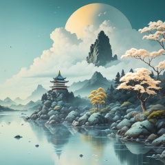 (best quality), (masterpiece), (ultra-detailed), illustration, 8k wallpaper, best illustration, (extremely detailed CG unity 8k wallpaper), huge filesize,tree, no humans, outdoors, scenery, architecture, east asian architecture, cloud, water, bird, day, sky, torii, waterfall, fish, leaf, moon, reflection, nature, mountain, building, blue sky, rock<lora:landscape-000020:0.9>