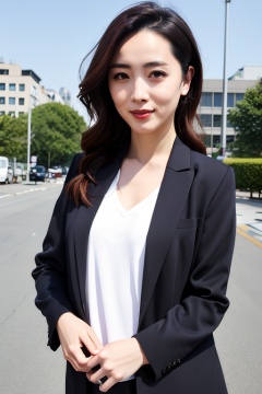 マスターチーフ PHOTOREALISTIC REALISTIC,masterpiece,best quality,highres,ultra detailed,8k,1woman,upper body,suit,make up,looking at viewer,day,outdoors,<lora:lisisiAlexnsfw80:0.6>
