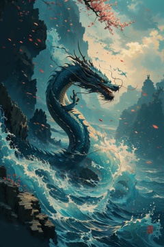 sdmai, guofenglong, no humans, dragon, scenery, water, eastern dragon, outdoors, cloud, fantasy, ocean <lora:国风龙sdmai,guofenglong:0.9>
