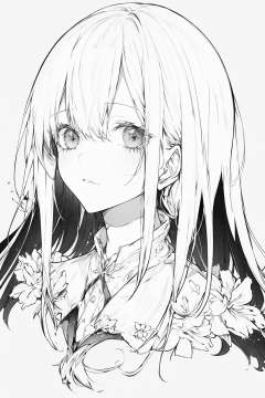 monochrome, solo, long hair, 1girl, greyscale, looking at viewer, white background, simple background, bangs ,///////////<lora:hitokomorustyle:2>