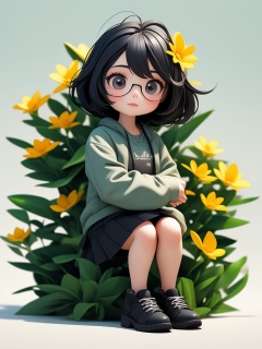 1girl, solo, cute, black shoes, chibi, sitting among oversized flowers, minimalism,  <lora:watercolor_flower:0.6>,  best quality, ultra highres, CG unity, octane rendering,