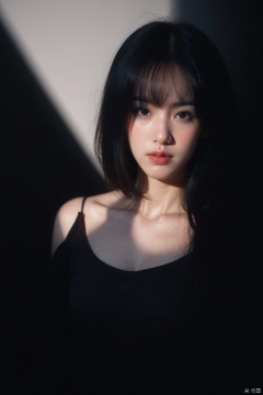 1girl,solo,upper body,in the dark,dress,deep shadow,reflection light,depth of field,black background,simple background,( chiaroscuro,Fujicolor, UHD, super detail ,raw,85mm,f/1.2,FujifilmXT4,),,.
