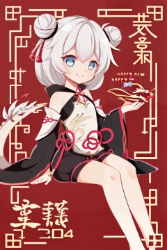 (hyper cute girl:1.1025), (flat color, vector art:1.3401), Chinese dragon theme, beautiful detailed eyes, hyper-detailed, hyper quality, eye-beautifully color, face, (her hair is shaped like a Chinese dragon, Chinese dragon, hair, Chinese dragon:1.2763), (1girl:1.2155), (high details, high quality:1.1576), (backlight:1.1576), high quality, (title:happy new year 2024:1.3), (cover design:1.2), simple background, cover art, trim, album_art, /, /, /, /, /, /, /, 1girl, (chibi), <lora:tangou-v100:0.8:lbw=OUTALL>, tangou, 1girl, theresa apocalypse, double bun, hair bun, chinese clothes, blue eyes, bare shoulders, bangs, white hair, short hair, black shorts, /, /, /, /, (((holding a little Chinese dragon))), (((sitting, Chinese dragon on legs))), [[smile]], large breast, dragon, (((Chinese dragon print))), (Loong:1.2), pajamas, kimono, bare shoulders, /, /, /, /, /, /, lantern, red background, ((simple background)), ((happy new year 2024, new year theme, new year, 2024, gift box,)), (red decorations on dragon), ((Chinese new year)), Chinese knot, red ornaments, spring festival, /, /, /, /, /, /, /, hair with body, CTA dress, CAY leg, Loong hands, body with Loong, dress with Loong, light particles, (Hair with Loong:1.2155), small breast with Loong, 1girl, small breast, marbling with hair and clothes, (original:1.1025), (arm down:1.1025), (paper cutting:1.1025), ------, Low saturation, grand masterpiece, Perfect composition, film light, light art,