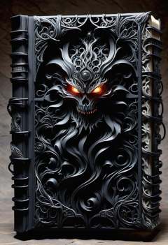 hyper detailed masterpiece, dynamic, awesome quality, DonMN1gh7D3m0nXL self-help,  wire binding, embossing, stone,    slipcases, made of shadow  <lora:DonMN1gh7D3m0nXL-v1.1-000008:1>
