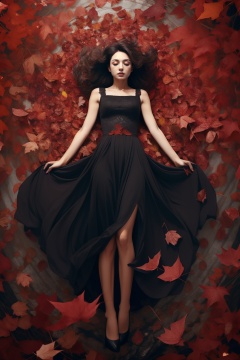 A girl with short black hair,hongye,Fallen leaves,<lora:hongye:0.7>,Half of one's body,