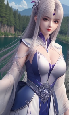 (,1girl, ,best quality, ),looking at viewer, <lora:427-DA-斗破苍穹-小医仙-天毒女-白衣:0.8> ,ultra detailed 8k cg, ultra detailed background,  ,masterpiece, (( , )) , lake,upper body,   (cleavage), (),