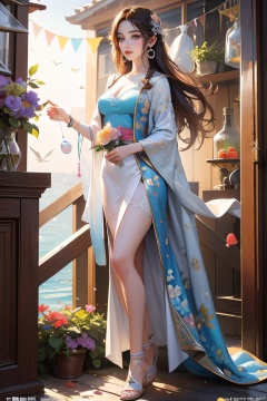 masterpiece,best quality,ultra-detailed,photorealistic,realistic,photography,over the sea,flower,balloon,full body,,