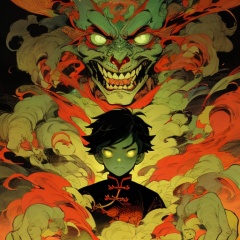masterpiece,best quality,comic,Vivid Colors,Technicolor,1boy,chinese style,(horror atmosphere:0.6),(horror novel:0.5),<lora:FF_20231229002002-000005:0.5>,