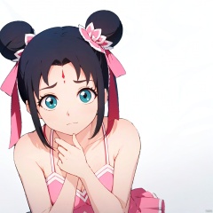 nezha, 1girl, solo, black hair, forehead mark, hair bun, hair bun, double bun, breasts, miniskirt, bare shoulder, pink footwear, green skirt,upper body,close-up,