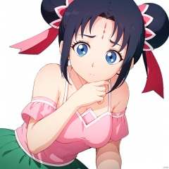 nezha, 1girl, solo, black hair, forehead mark, hair bun, hair bun, double bun, breasts, miniskirt, bare shoulder, pink footwear, green skirt, upper body, close-up, close-up,