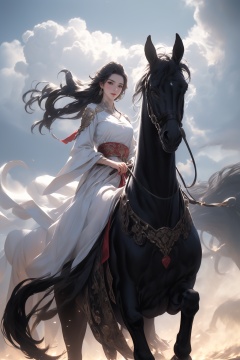 (8k,RAWphoto,bestquality,masterpiece:1.2),(realistic,photo-realistic:1.2)(rawphoto)(extremelydetailedCGunity8kwallpaper),1girl,black horse,red dress,white horse,<lora:DTbm_20230901182919-000004:0.5>,