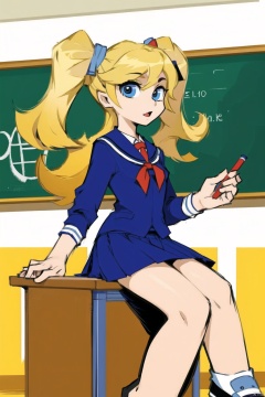 masterpiece,1girl,psstyle,school uniform,twintails,blonde, Psstyle,flat color,classroom, PSstyle