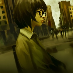 <lora:loneliness_xl_v2:1>,The image portrays a side profile of a young individual with short,dark hair and glasses. They are gazing into the distance,with a contemplative expression. The setting appears to be an urban environment,possibly a cityscape,with tall buildings and structures in the background. The atmosphere is somewhat somber,with a muted color palette dominated by grays and browns. The image has a painterly quality,suggesting it might be an artwork or a digital illustration.,young individual,short dark hair,glasses,side profile,urban environment,cityscape,tall buildings,muted color palette,painterly quality,artwork or digital illustration,