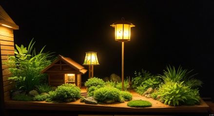 Micro landscape, lantern fish swimming in this space, wood,(lampfish: 1.5),there are many aquatic plants, plants and wood,((Best quality)),((Best quality)),((realistic)),((exterior view)),photo realistic,(masterpiece),orante,super detailed,intricate,photo like quality, LAOWANG