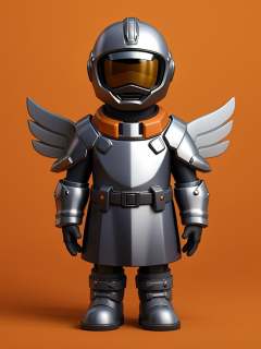 Masterpiece,top-notch quality,xiaokeai,chibi,hdri,Edge light,1boy,smile,standing,posing for a picture edgWalkure,long hair,dress,wings,armor,helmet,head wings,shoulder armor,feathered wings,angel wings,armored dress,boots,Bold colors,((orange background)),depth of field,white background,<lora:模型手办Blindbox:0.6>,