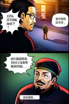 Sanshikongbu,black hair,long sleeves,hat,male focus,multiple boys,glasses,2boys,speech bubble,facial hair,chinese clothes,beard,mustache,chinese text,korean text,old,old man,8K,HDR,high resolution,(Masterpiece :1.3),(best quality :1.2),high quality,high detail,blurry background,