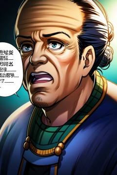 Sanshikongbu,solo,open mouth,black hair,1boy,male focus,hair bun,speech bubble,grey eyes,parody,single hair bun,letterboxed,wrinkled skin,8K,HDR,high resolution,(Masterpiece :1.3),(best quality :1.2),high quality,high detail,blurry background,