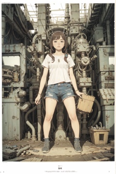 8k,absurdres, highres, ultra detailed, masterpiece, sharp shading,under,Tatsuyuki1girl,kid,abandon staion,monocolor,gaint machine,(obsolete machine:1.3)(solo:1.2),1girl,masterpiece,<lora:Tatsuyuki Tanaka-000009:0.5>  <lora:Migunov2:1>