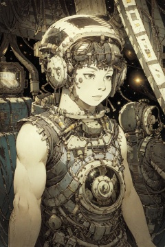 8k,absurdres, highres, ultra detailed, masterpiece, sharp shading,under space,Tatsuyuki1boy,abandon staion,astronaut helmet,monocolor,gaint machine,(obsolete machine:1.3),upper body, (solo:1.2),1girl,masterpiece,<lora:Tatsuyuki Tanaka-000009:0.7> <lora:Migunov2:1> <lora:GoodHands-vanilla:1>