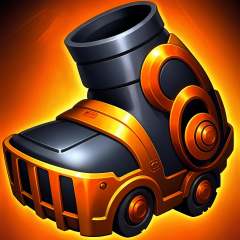 HEZI,LOL game style, dress up icon, game icon, no humans, solo, orange background, shiny, from side, orange theme, robot, teeth, open mouth, armor, helmet, artist name, 1boy, signature, shiny skin, floating, steampunk, profile, upper body, male focus, simple background<lora:LOL装备图标:0.6>,