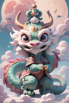 ,eastrn_dragon,cute_girl,dragon,white_dragon,flower,standing,dragon horns,hair_flower,pink_moon,clouds,