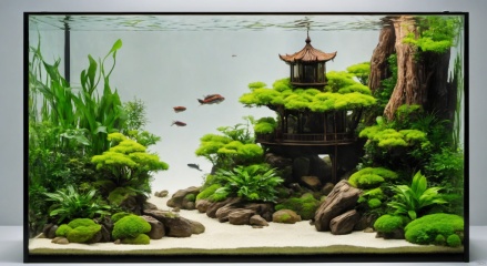 Micro landscape, lantern fish swimming in this space, wood,(lampfish: 1.5),there are many aquatic plants, plants and wood,((Best quality)),((Best quality)),((realistic)),((exterior view)),photo realistic,(masterpiece),orante,super detailed,intricate,photo like quality, micro landscape