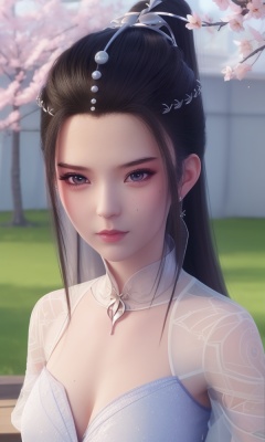 (,1girl, ,best quality, ),looking at viewer, <lora:431-DA-逆天邪神-楚月婵:0.8> ultra detailed background,ultra realistic 8k cg,ultra detailed 8k cg,masterpiece,upper body,  (( , )),, ,science fiction,mole, ultra realistic 8k cg, ,    ,outdoors, sun,sunlight, cherry blossoms,      (cleavage), (),