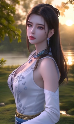 (,1girl, ,best quality, ),looking at viewer, <lora:432-DA-少年歌行-陈飞瑶:0.8> ,,ultra detailed 8k cg, ultra detailed background ,ultra realistic 8k cg,          cinematic lighting, cinematic bloom, (( , )),,  , unreal, science fiction,  luxury, jewelry, diamond, pearl, gem, sapphire, ruby, emerald, intricate detail, delicate pattern, charming, alluring, seductive, erotic, enchanting, hair ornament, necklace, earrings, bracelet, armlet,halo,masterpiece, (( , )),, realistic,science fiction,mole,   ,cherry blossoms,,(((Best quality, masterpiece, ultra high res, (photorealistic:1.4), raw photo, 1girl, ,rain, , sunlight, sunset, qianqiu wanxia,     )))  (cleavage), (),