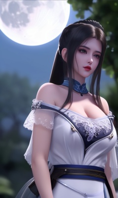 (,1girl, ,best quality, ),looking at viewer, <lora:432-DA-少年歌行-陈飞瑶:0.8> ,ultra detailed background,ultra detailed background,ultra realistic 8k cg, ,masterpiece, (( , )),, ,fiction,mole,,      ,(cleavage), (),  ,see-through, lace, (((, solo, moon, , bare_tree, )))(cleavage),