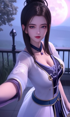 (,1girl, ,best quality, ),looking at viewer, <lora:432-DA-少年歌行-陈飞瑶:0.8> ,ultra detailed background,ultra detailed background,ultra realistic 8k cg,, ,masterpiece, (( , )),, ,   ,   cure blossom, full moon,night,night sky,  (cleavage), (), ,,