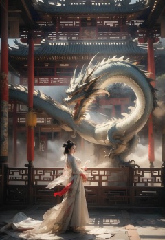 (masterpiece:1.2),best quality,highres,extremely detailed CG,perfect lighting,8k wallpaper,Illustration,ink wash painting,1girl,chinese_clothes,cloud and fog,dragon,<lora:003:0.5>,