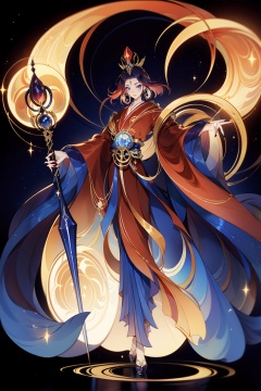 A female magician wearing a purple red robe stood in the center of the formation,with waist length golden hair and blue eyes focused and mysterious. She wore a gemstone belt around her waist and held a long staff inlaid with sapphires. She raised her hands above her head,reciting a spell to cast magic,and a blue flame erupted from the tip of her wand. Her legs are straight,and ten fingers with red nail polish gather magic. She stood inside a tall stone tower,surrounded by dim light,with magnificent magic circles carved on the floor,(full body:1.2),<lora:GF:0.65>,<lora:lightline_v2.0:0.6>,<lora:HB:0.2>,