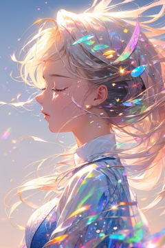 (((masterpiece))),((extremely detailed CG unity 8k wallpaper)),best quality,high resolution illustration,Amazing,(best illumination, best shadow, an extremely delicate and beautiful),mother of pearl iridescence,1girl, solo, long hair, closed eyes, blurry, floating hair, eyelashes, from side, profile, depth of field, closed mouth, upper body, lips, blurry background, tears, <lora:digital_colorful-000015:0.7>