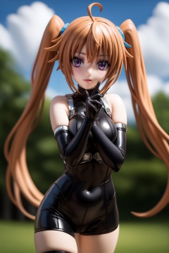 pvc style,irinashidou,,irina shidou, long hair, brown hair, twintails, (purple eyes:1.1), very long hair, ahoge,BREAK thighhighs, gloves, bare shoulders, black gloves, elbow gloves, bodysuit, covered navel,BREAK outdoors, forest, night, sky, clouds, moon, starry sky,BREAK looking at viewer, (cowboy shot:1.5),BREAK (masterpiece:1.2), best quality, high resolution, unity 8k wallpaper, (illustration:0.8), (beautiful detailed eyes:1.6), extremely detailed face, perfect lighting, extremely detailed CG, (perfect hands, perfect anatomy),figma,full body, <lora:irina shidou anime s2-lora-nochekaiser:1>